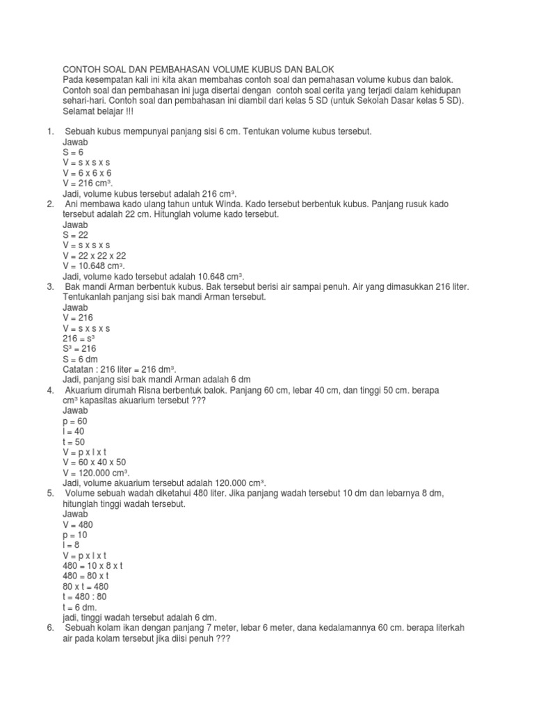 Kunci Jawaban Matematika Kelas 5 Volume Kubus Dan Balok / Soal Dan Jawaban Belajar Dari Rumah Tvri Gemar Matematika Untuk Sd Kelas 4 6 Volume Bangun Ruang Tribun Bali : Kalu benar kasih nilai:) semoga membantu^_^.