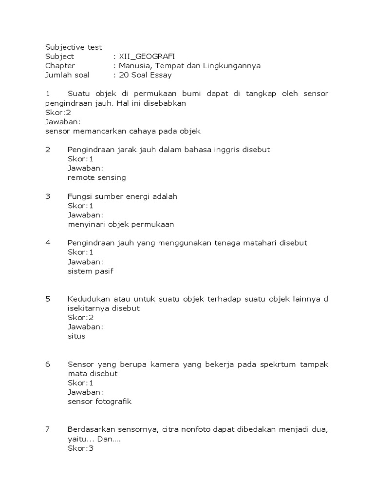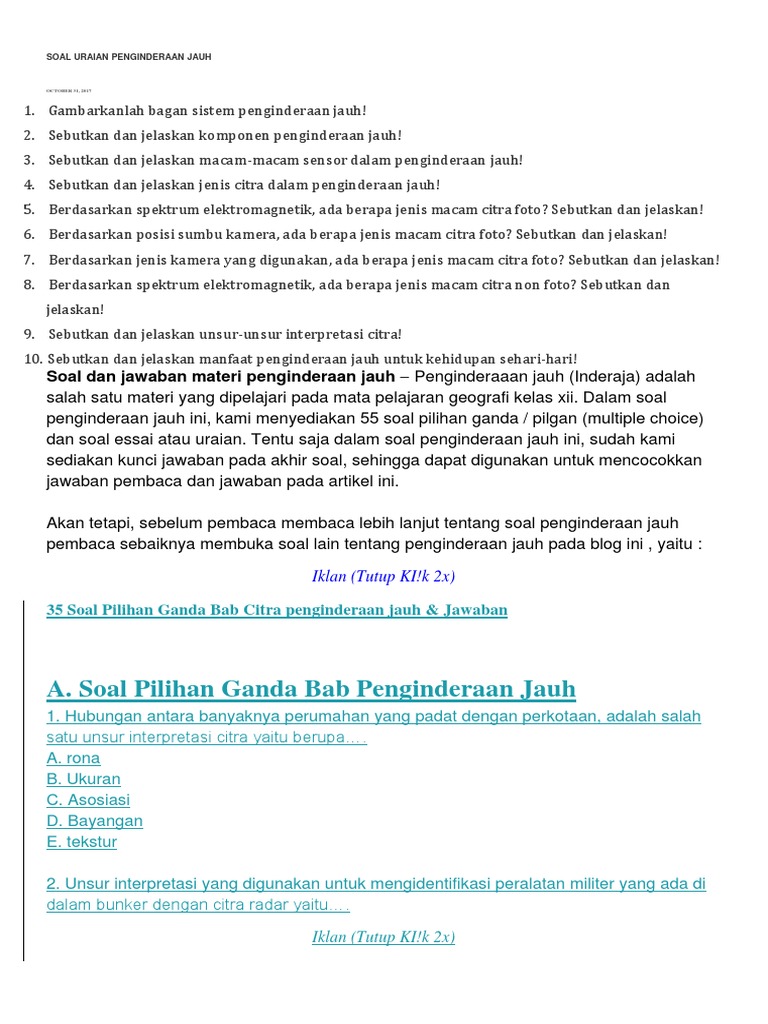 Soal Essay Tentang Penginderaan Jauh - Soal Geografi Penginderaan Jauh Inderaja Kunci Jawaban Muttaqin Id / Tuliskan wahana berdasarkan ketinggian peredaran!. Dalam hal ini soal penginderaan jauh bisa dibuat tipe hots. Kumpulan rpp kurikulum 2013 dan ktsp. Soal soal geografi kelas 10 semester 1 beserta jawabannya untuk siswa sma ma sederajat bagian yang pertama berisikan materi tentang pengetahuan dasar geografi seperti ruang lingkup geografi konsep essesial geografi objek studi geografi. 76 contoh soal causal conjunction dan jawabannya english admin. Uraian (open book) (dikerjakan pada kertas ini juga) 1.